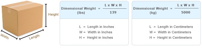 The volumetric weight is calculated using the formula: Length x Width x Height in centimeters / 5000 = Volumetric weight in kilograms